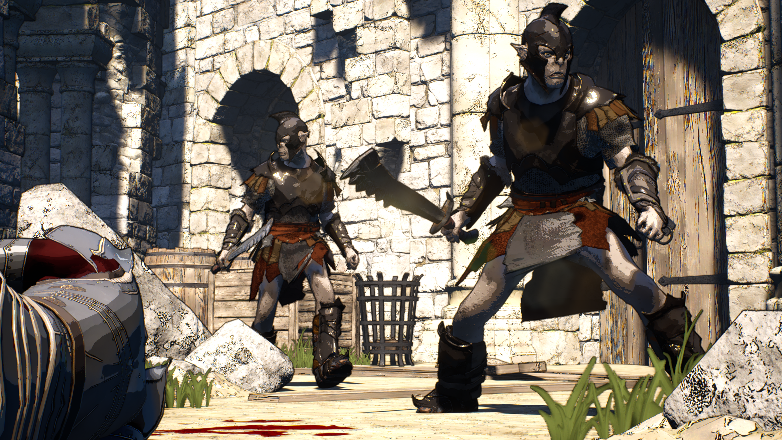 The visuals came down with a terrible case of “Epic Games Marketplace-itis”. Consider the discrepancy between the orcs and the brickwork in the background.
