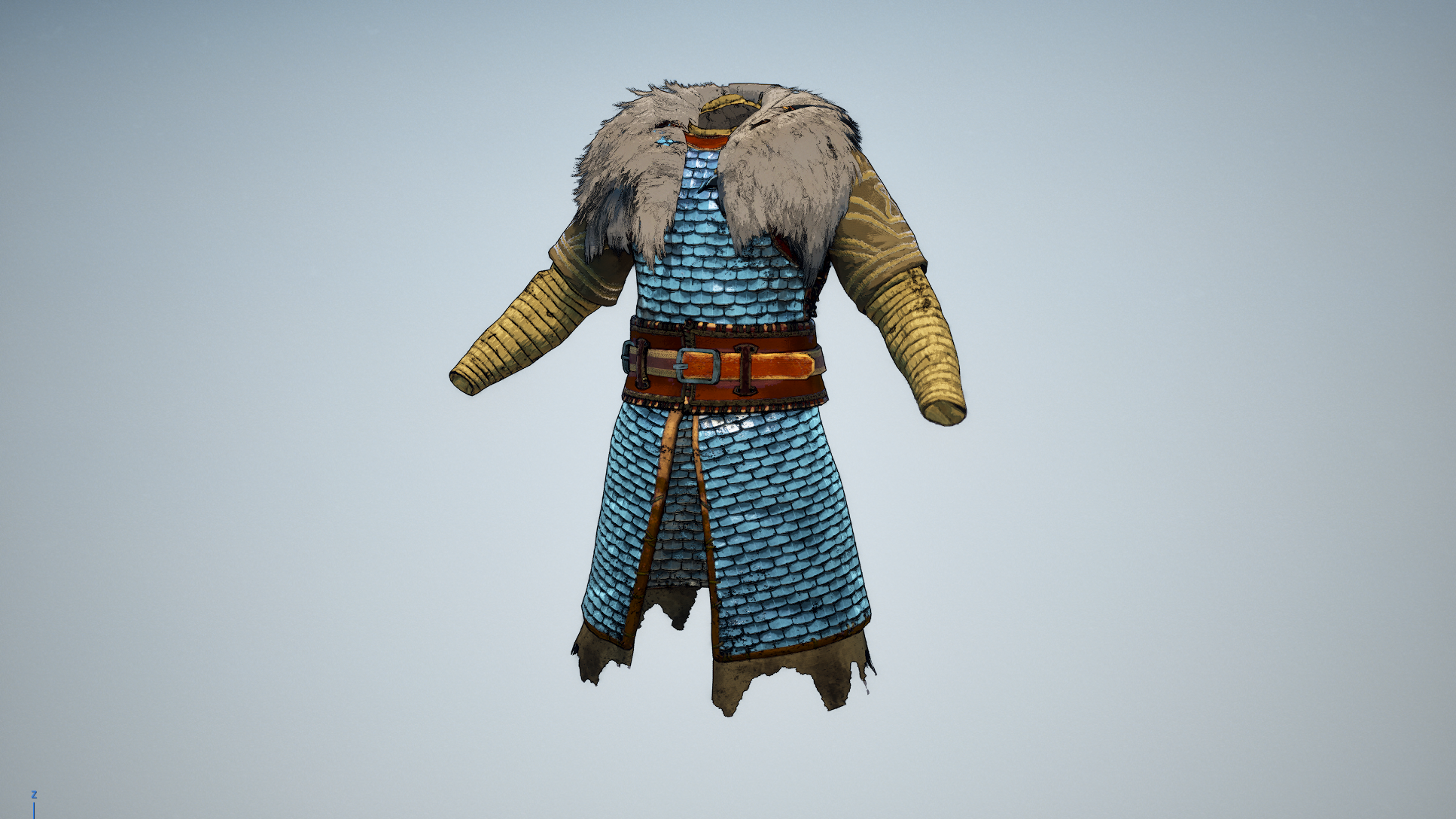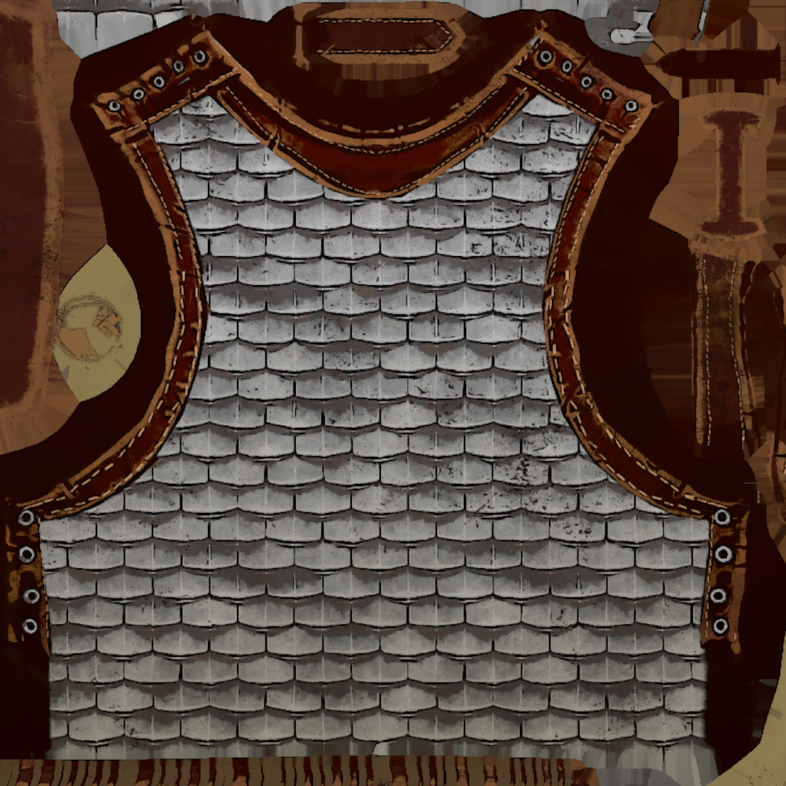 See how the form of the mail and the leather bands have been emphasised with outlines.